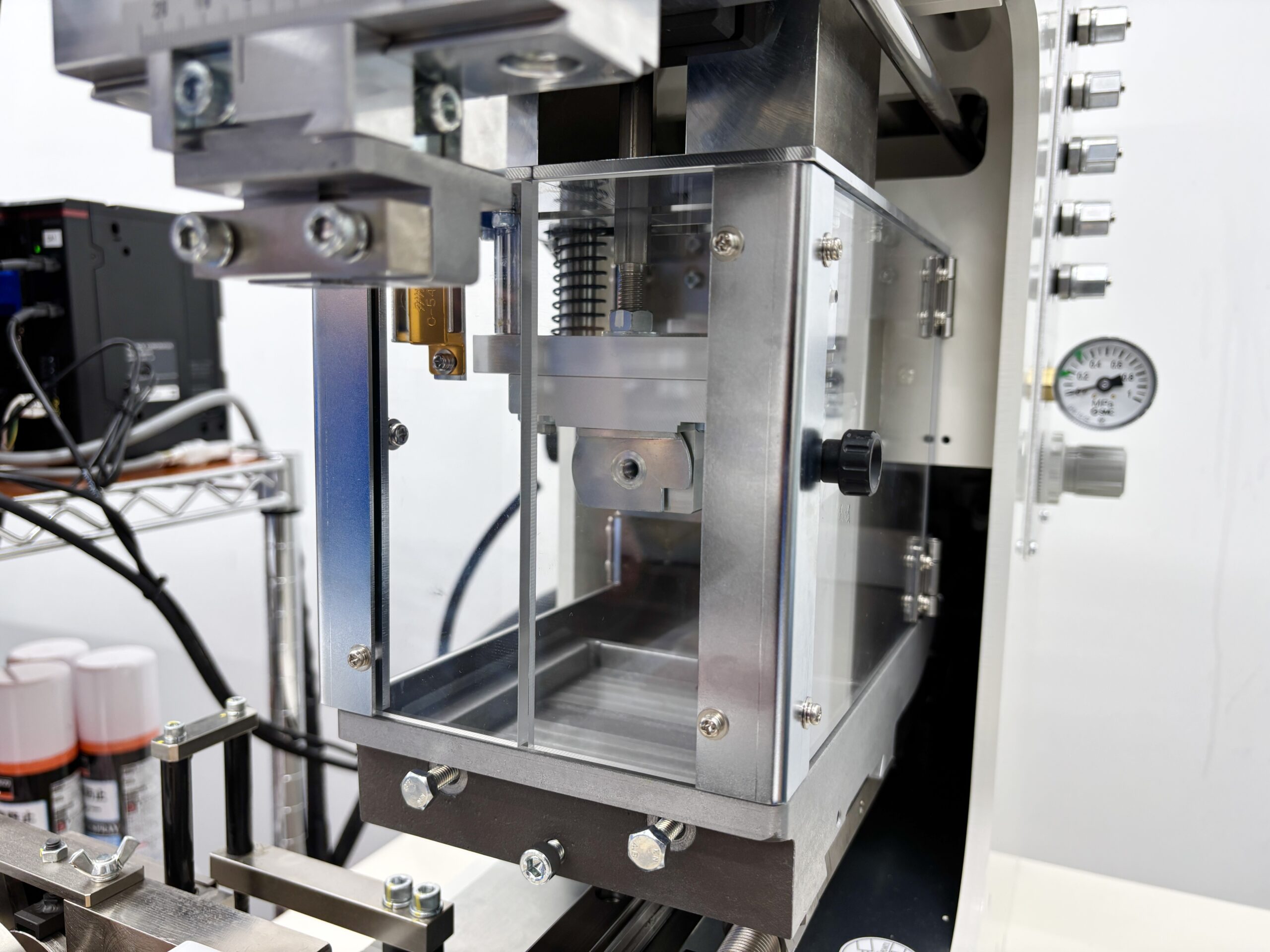 インクカップの周りを透明なアクリルで覆って、インクの乾燥を防ぎます。