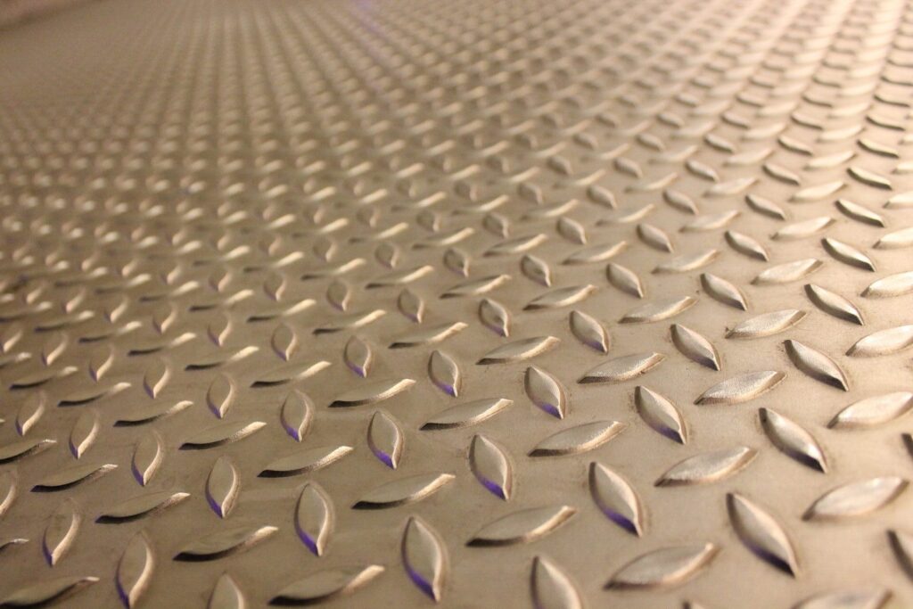 金属製の階段の表面にエンボス加工を施すことで、滑り止め効果を発揮し、安全性を高めます。