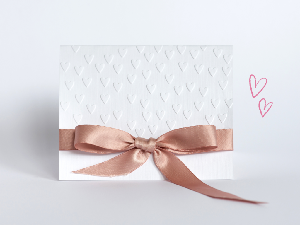 繊細で細かい模様をエンボス加工し、特別な日の招待状にふさわしい華やかさを与えます。上質な用紙を使用すると、より特別な印象になります。