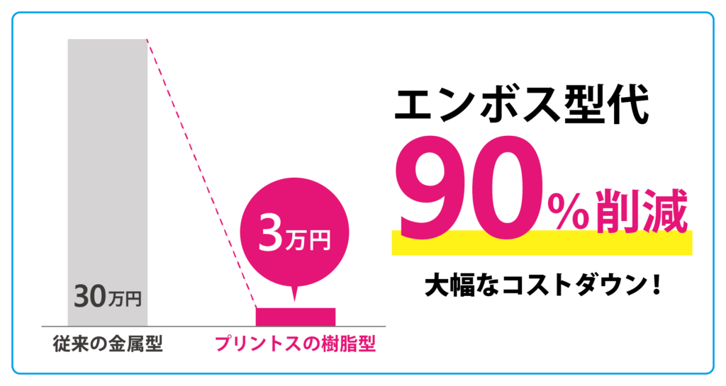 こちらのページでは、プリントスの樹脂型エンボス加工の「料金の目安」と「納期スケジュール」をわかりやすくご案内します。