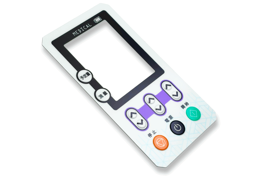 輸血ポンプ装置の操作シートに、エンボス加工を施しました。