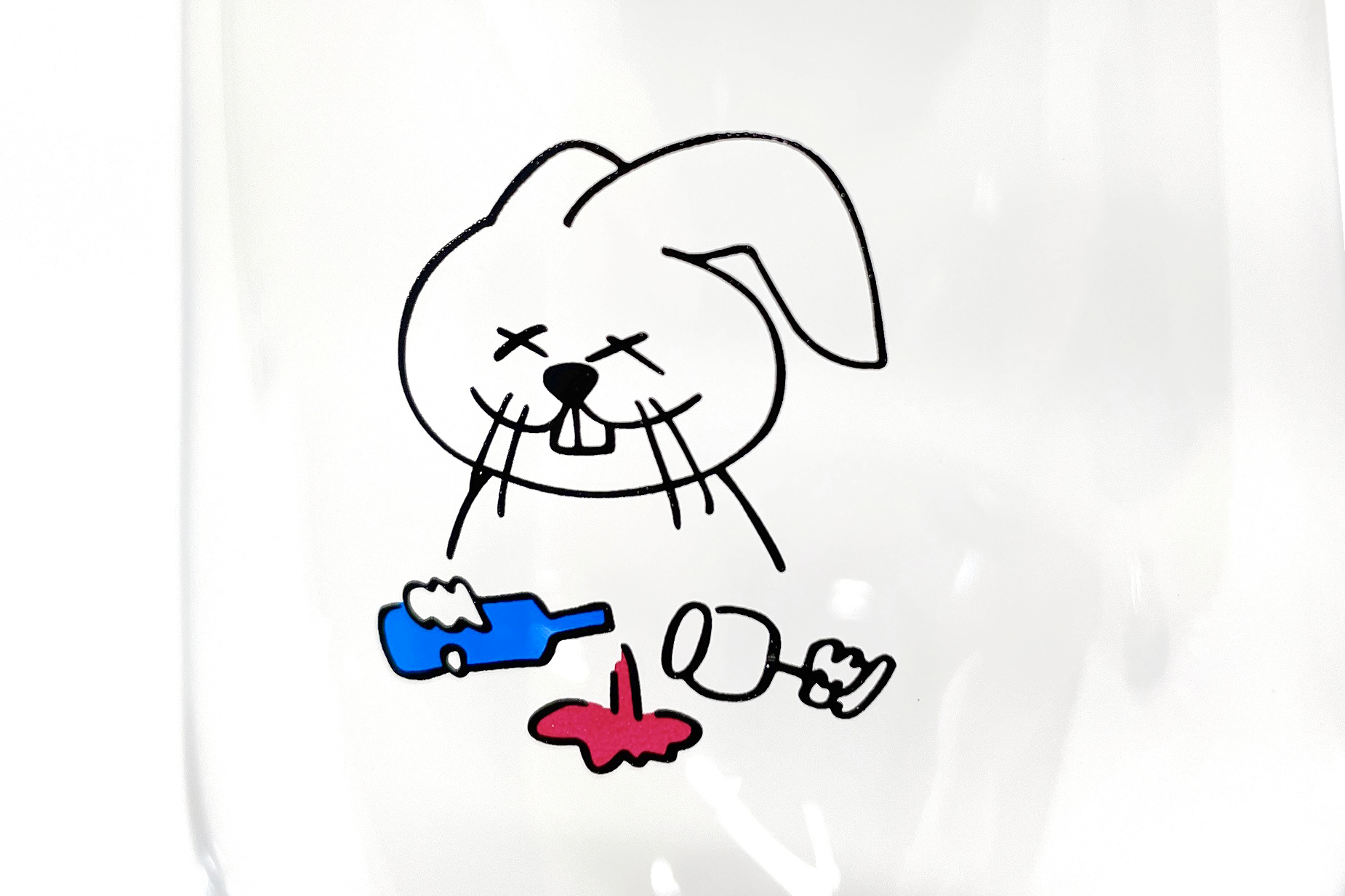 グラスは背景が透明のため、中に入れる飲み物の色もデザインの一部になります。注いだ時の見え方を意識してフォントや色を選ぶだけで、ガラスの透明感を活かしたクオリティの高い仕上がりになります。