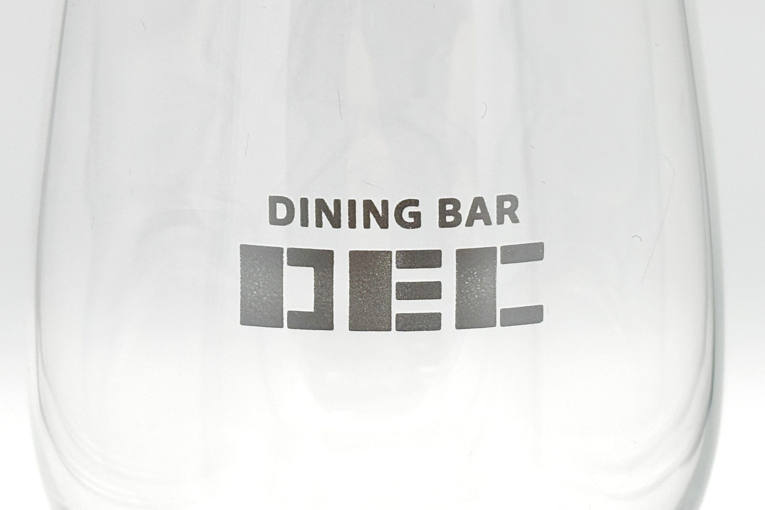 プリントスでは、グラスの曲線に合わせてロゴ位置を調整し、最も美しく見える状態で仕上げます。